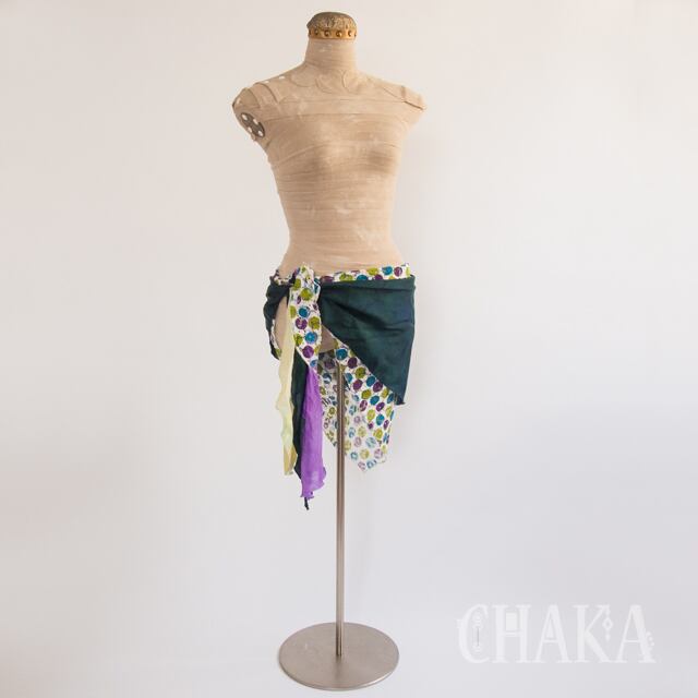 こちらのヒップスカーフは、水玉のレースとディープグリーンのシルクを重ねたモダンなデザイン。