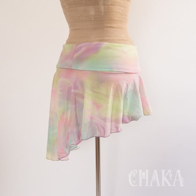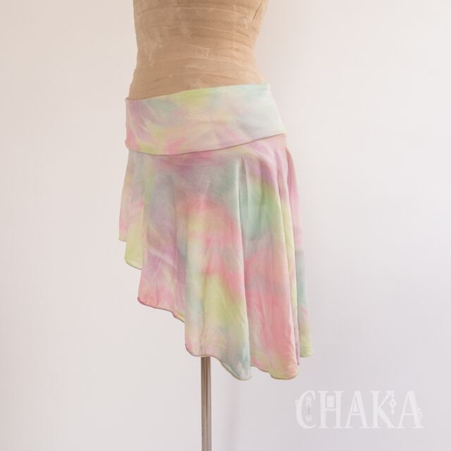 フロントをズラして、フィッシュテールスカートのように前を短く後ろを長くして履くのも◎。