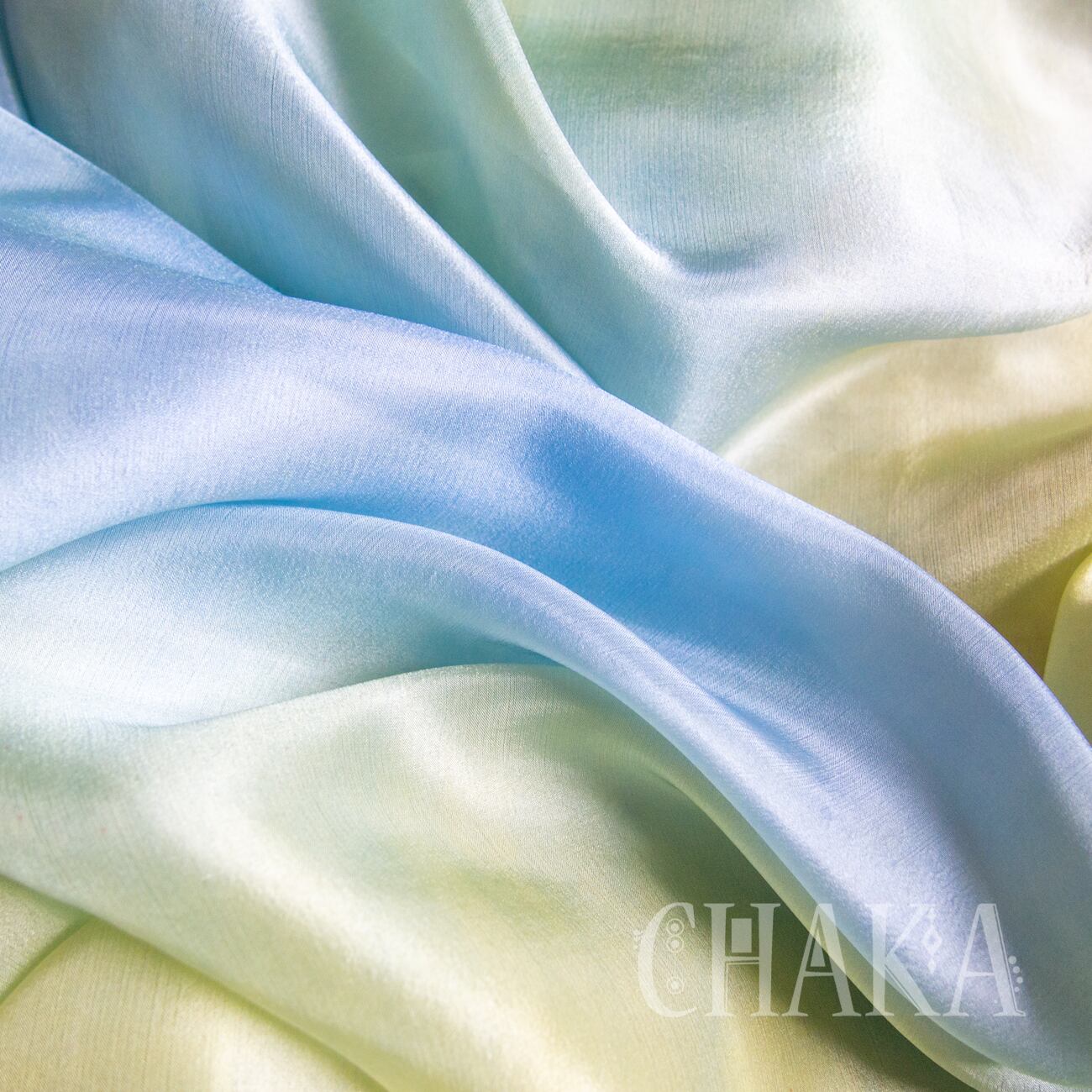 淡いセルリアンブルー、ゴールド、ターコイズグリーンでむら染めしました。