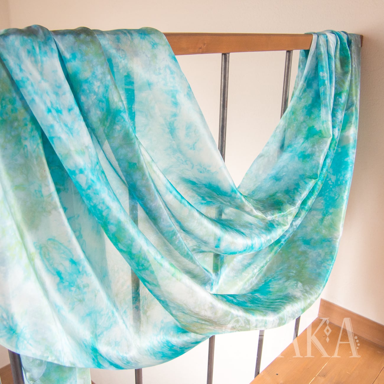 スカイブルー、グリーン、フォレストグリーンでむら染めしました。