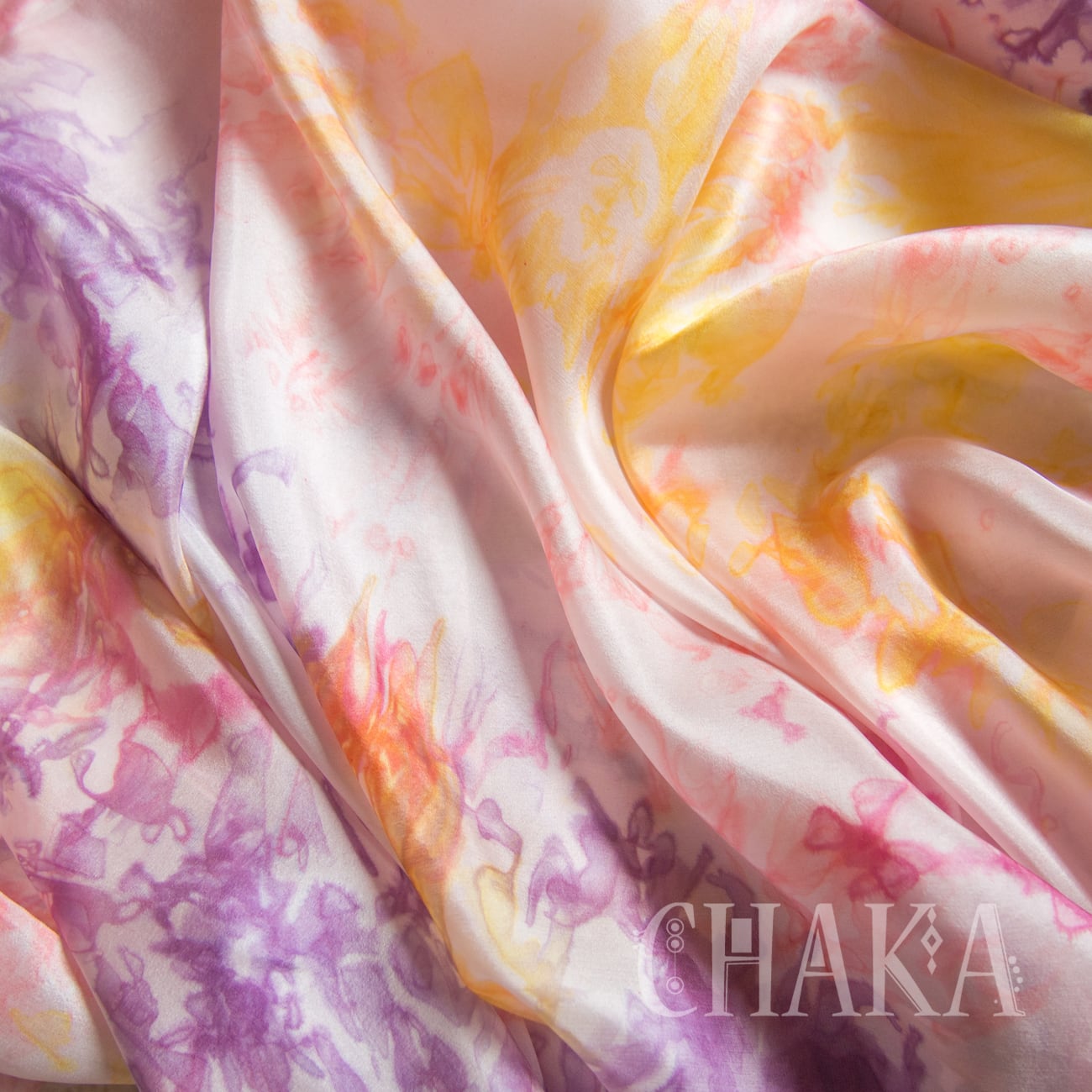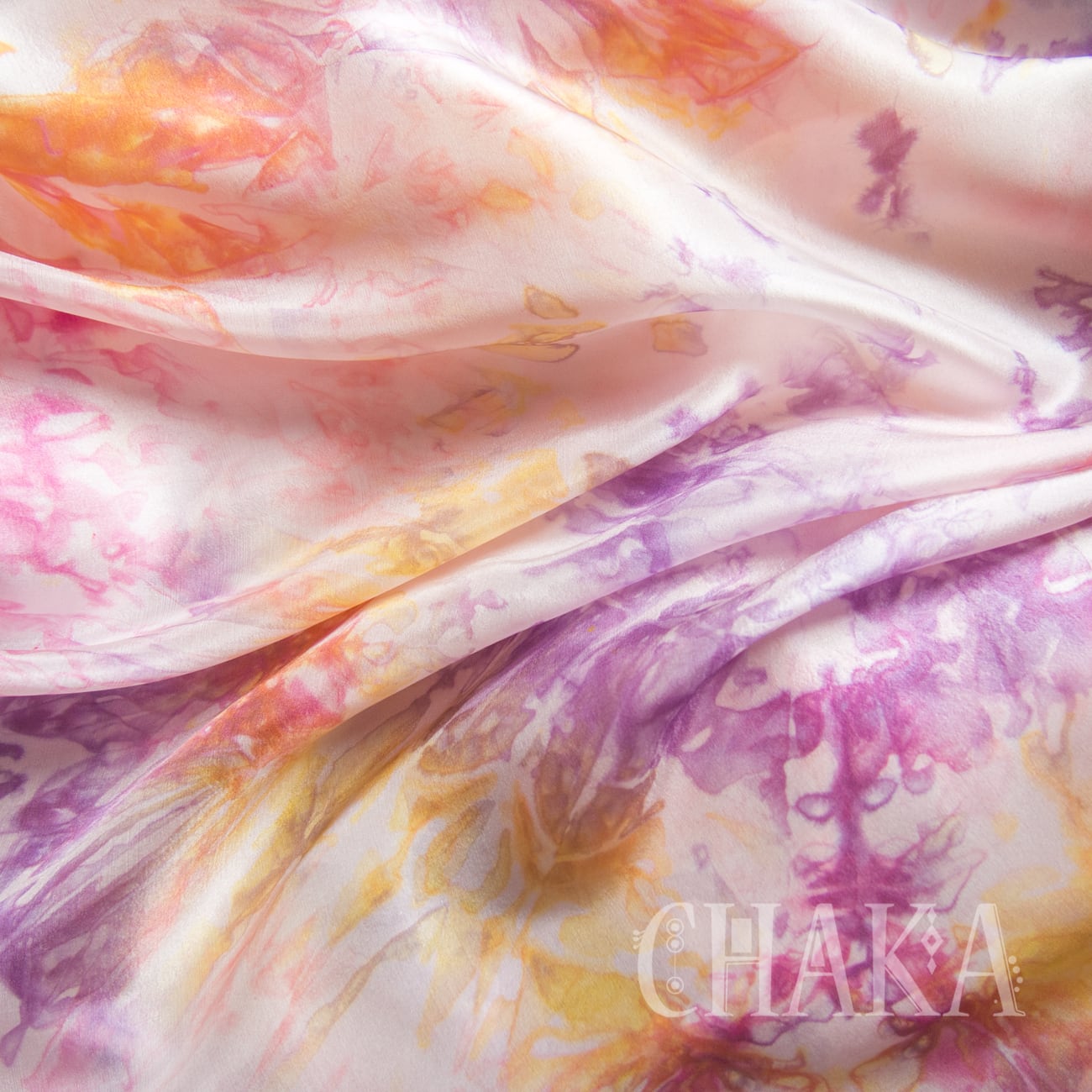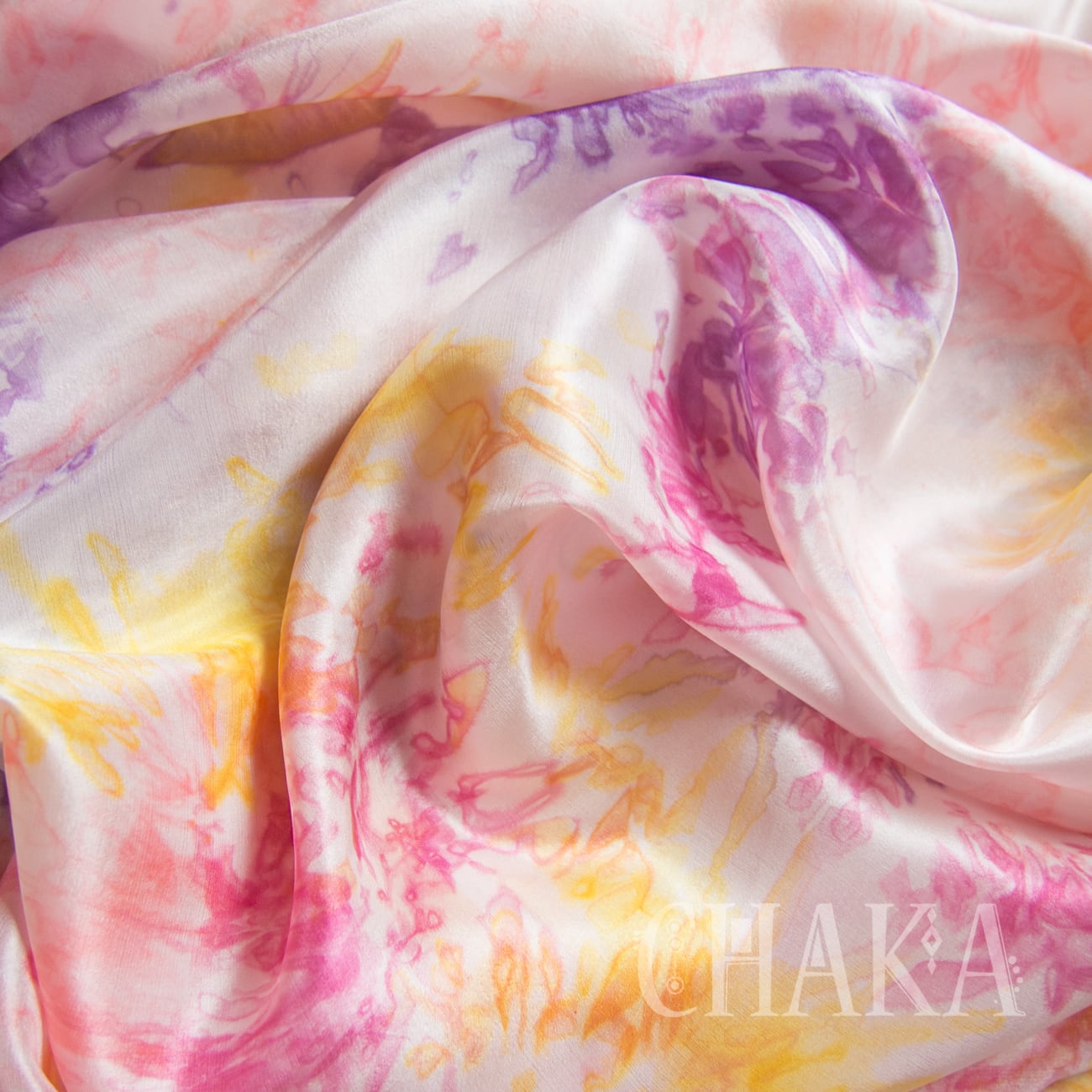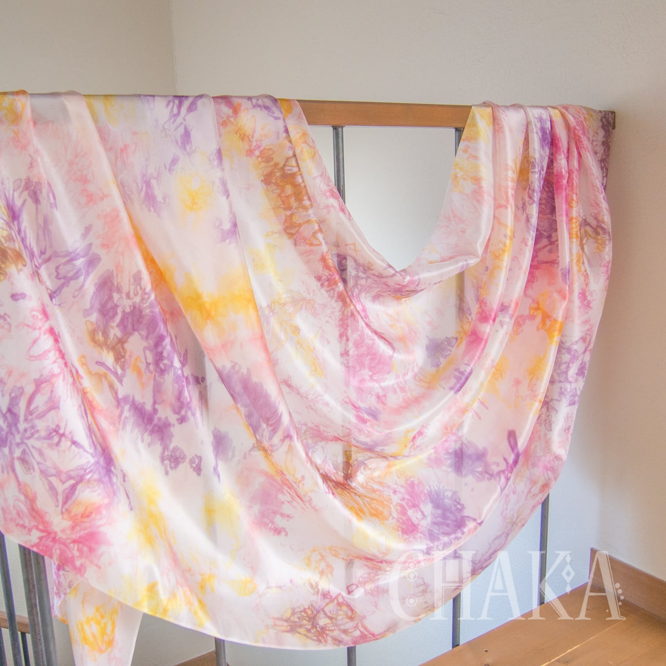 ゴールド、ローズピンク、コーラルピンク、パープルをむら染めで仕上げました。