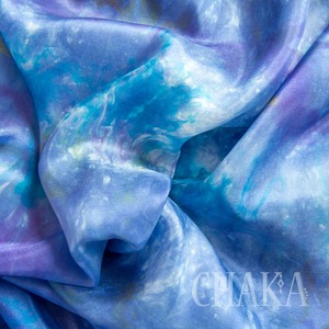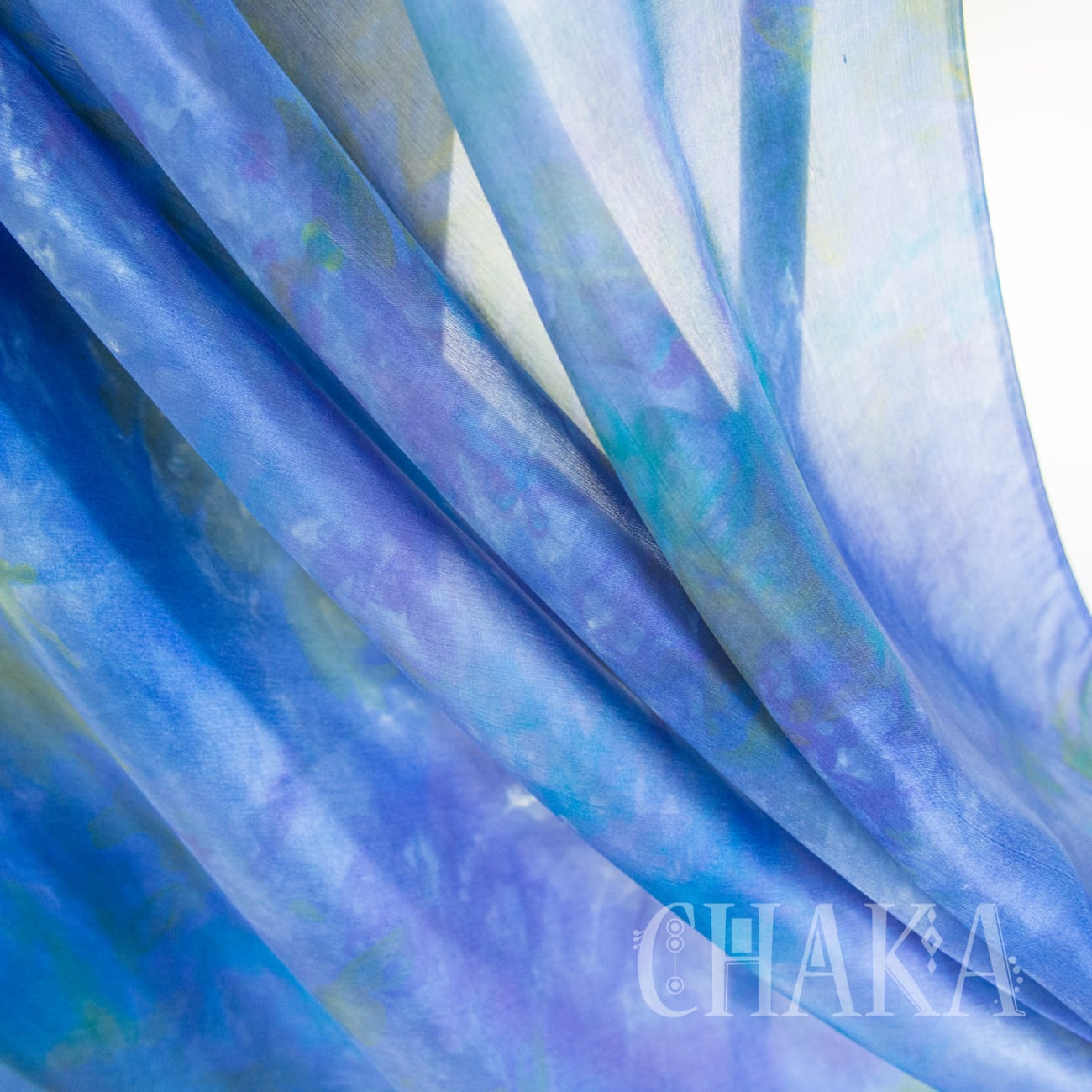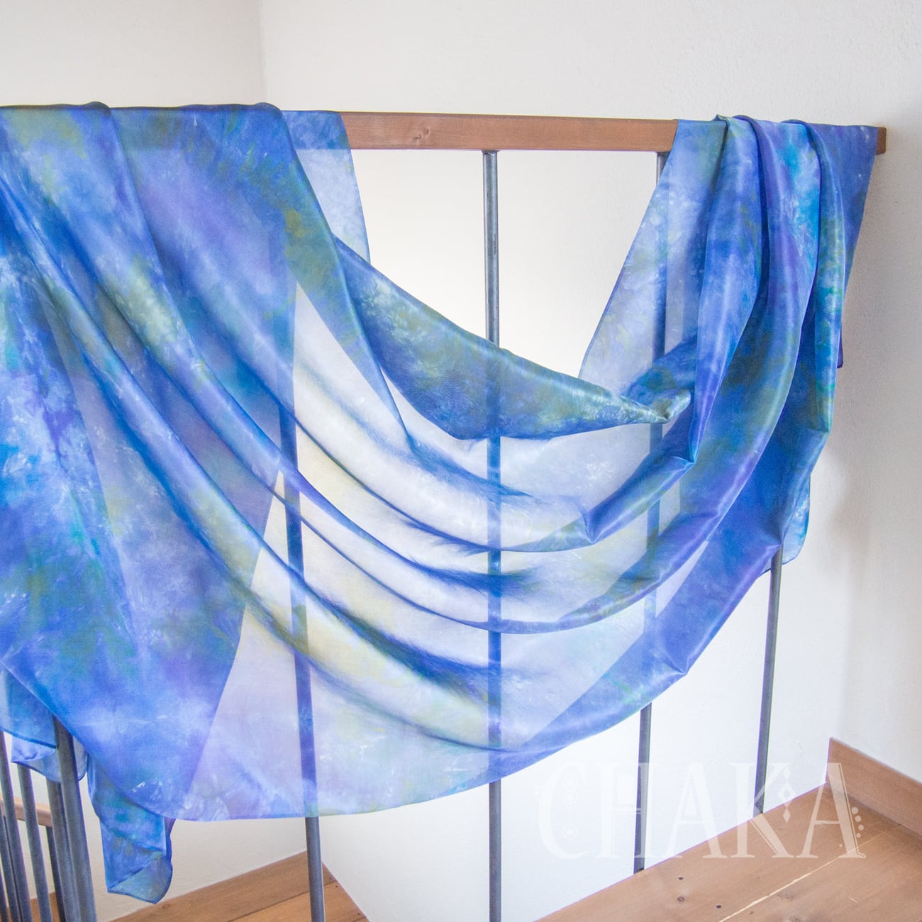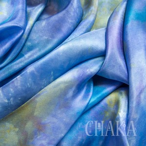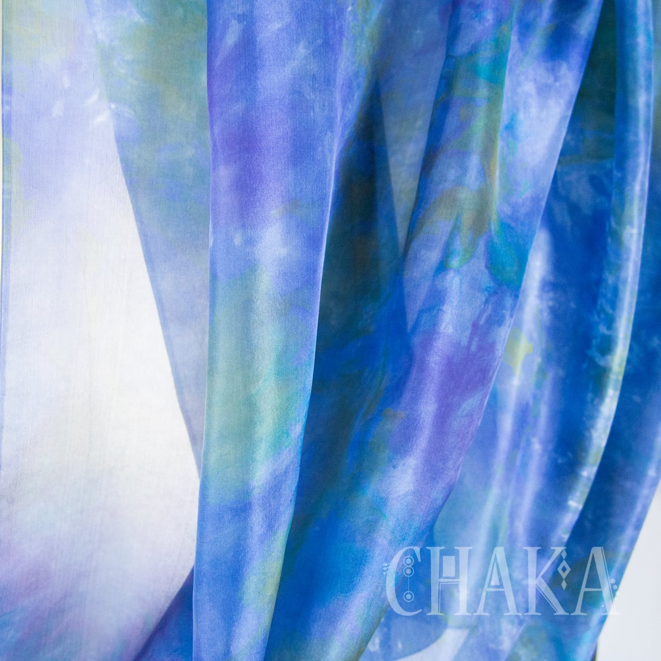 ロイヤルブルー、スカイブルー、バイオレット、ゴールドでむら染めしたシルクベールです。