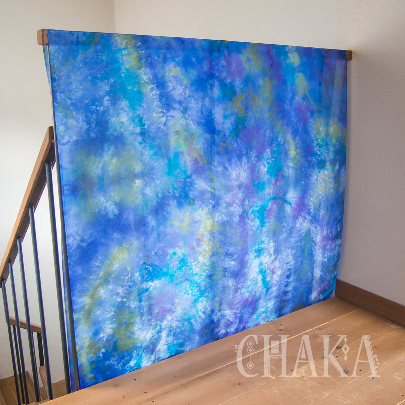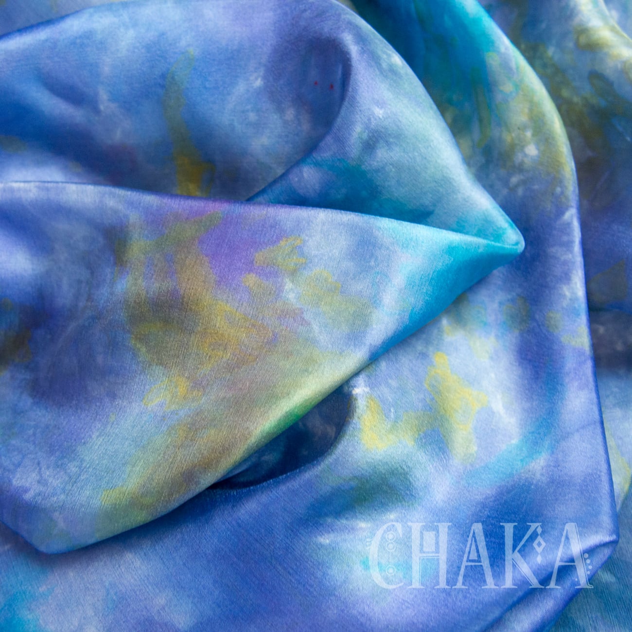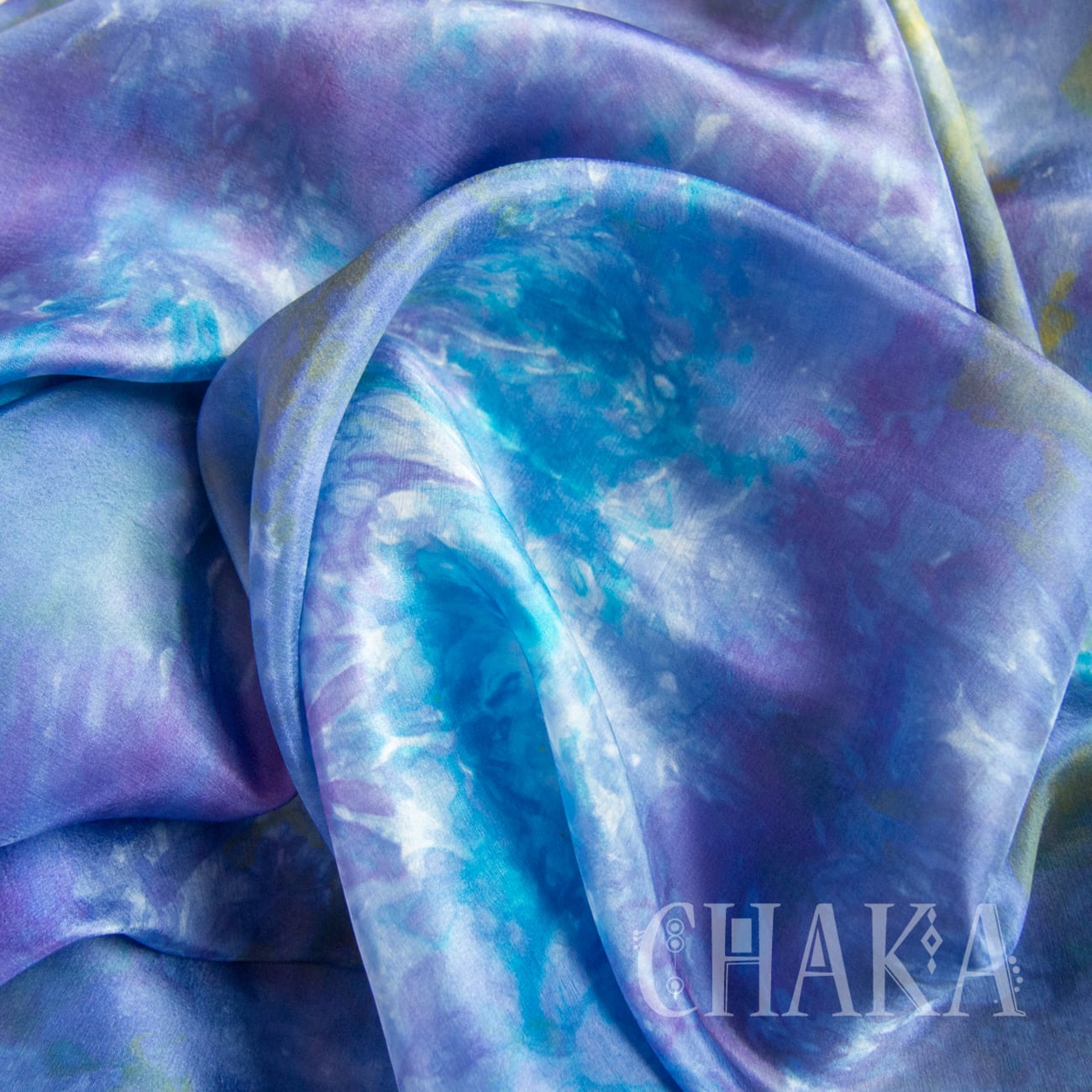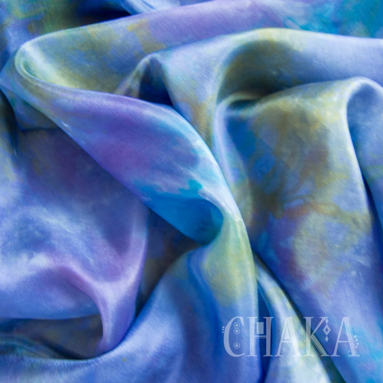 ロイヤルブルー、スカイブルー、バイオレット、ゴールドでむら染めしたシルクベールです。