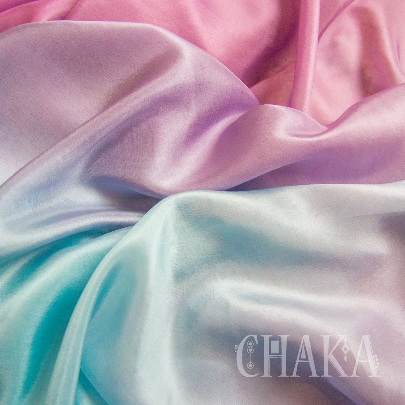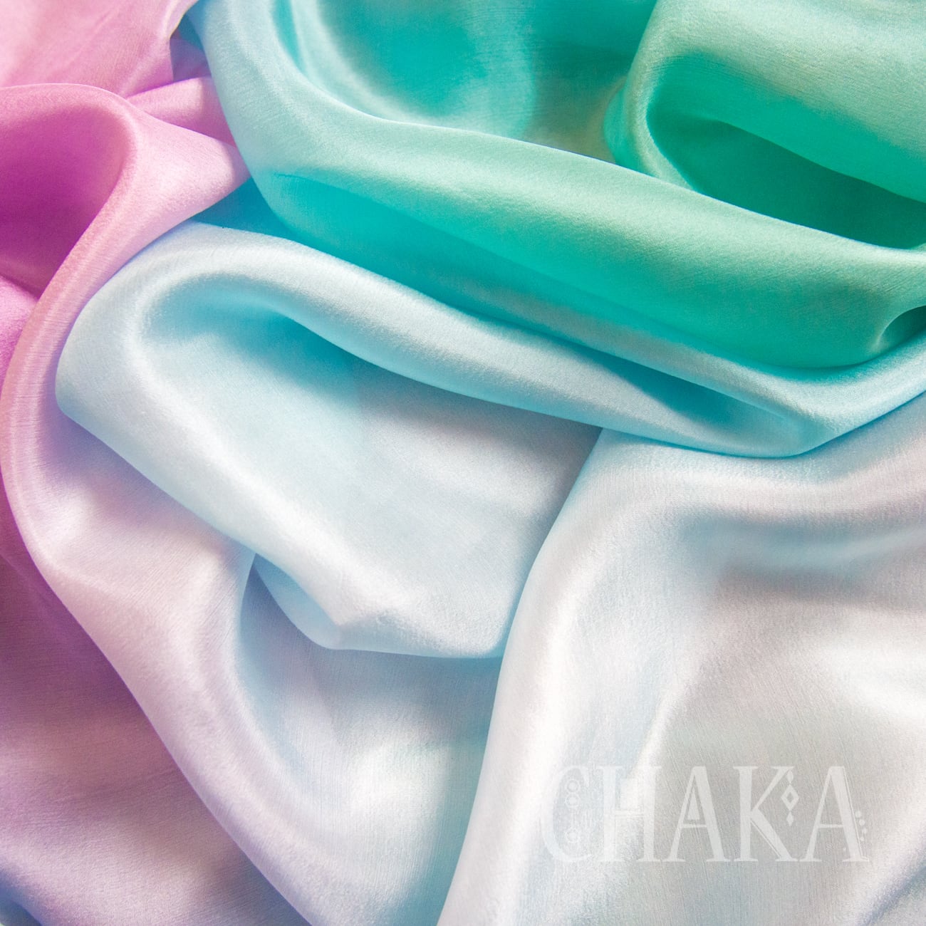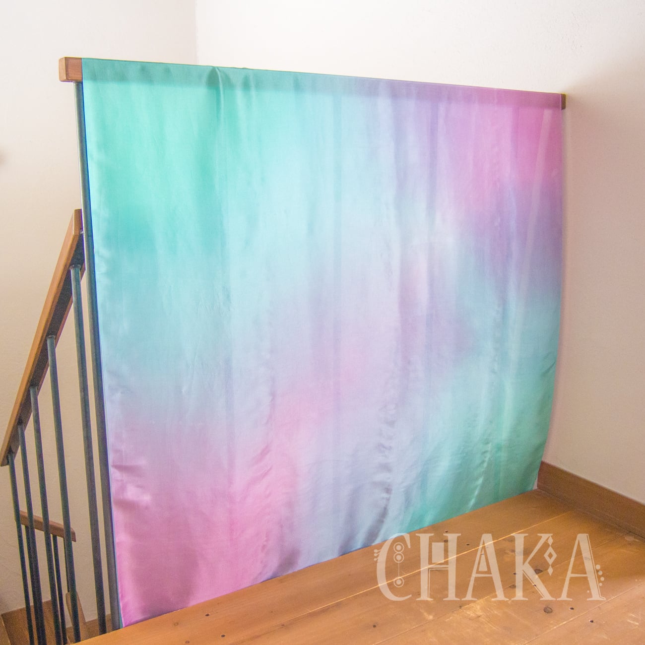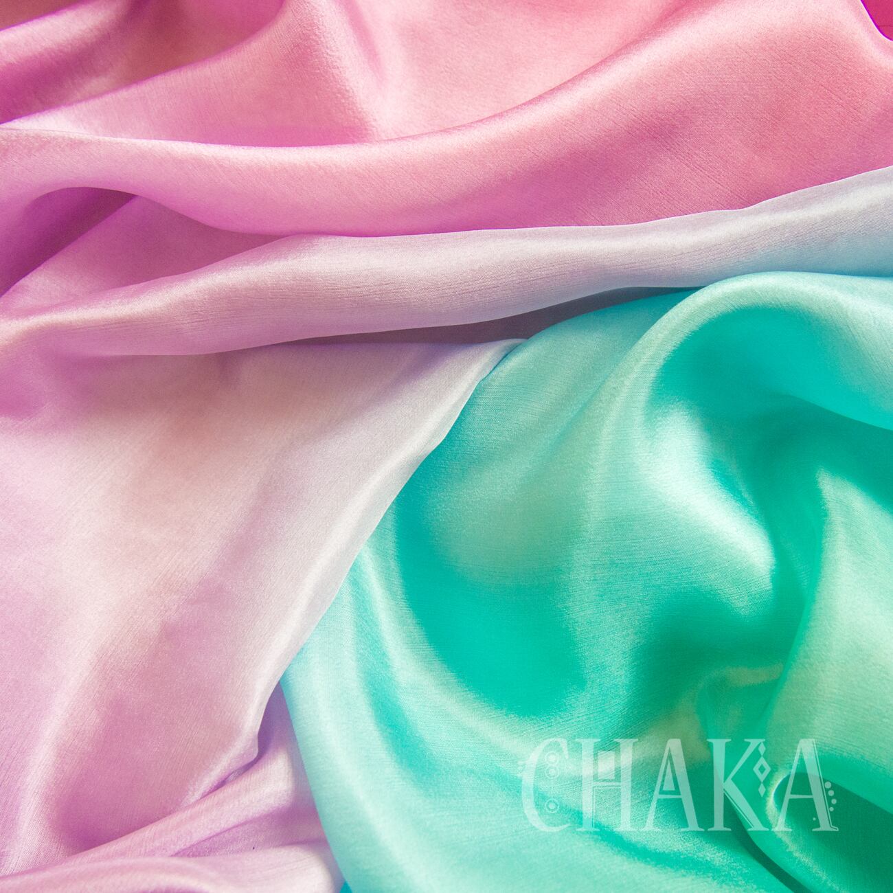 パープル、マゼンタ、ターコイズ、エメラルドをにじませ、重ねて染色したシルクベールです。