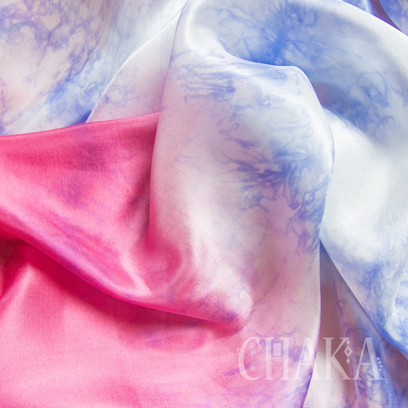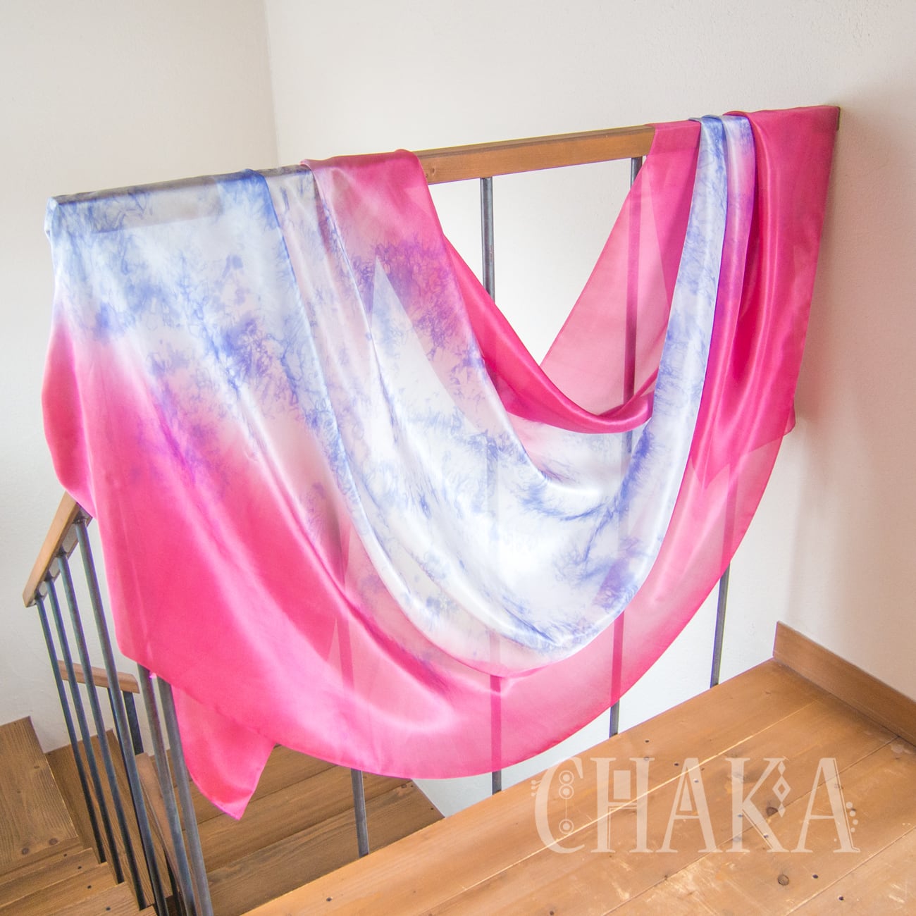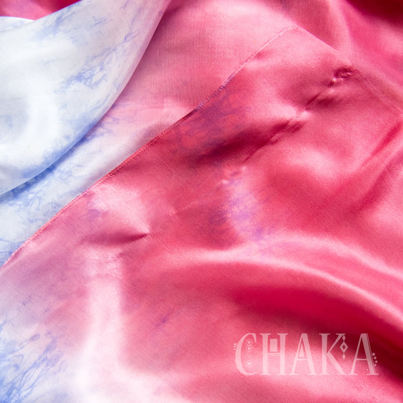 両サイドはローズピンクのグラデーション、中央はオリエンタルブルーのむら染め。