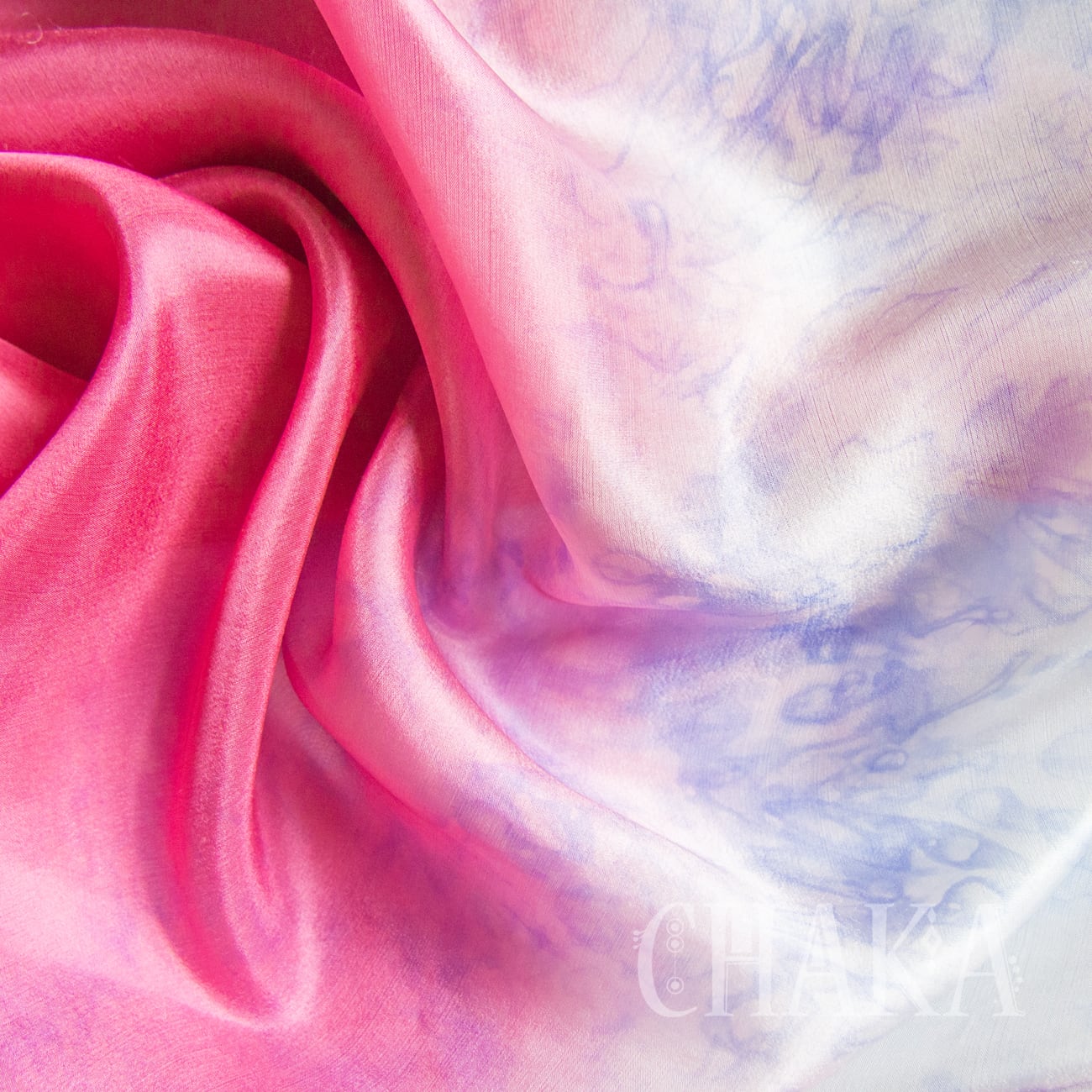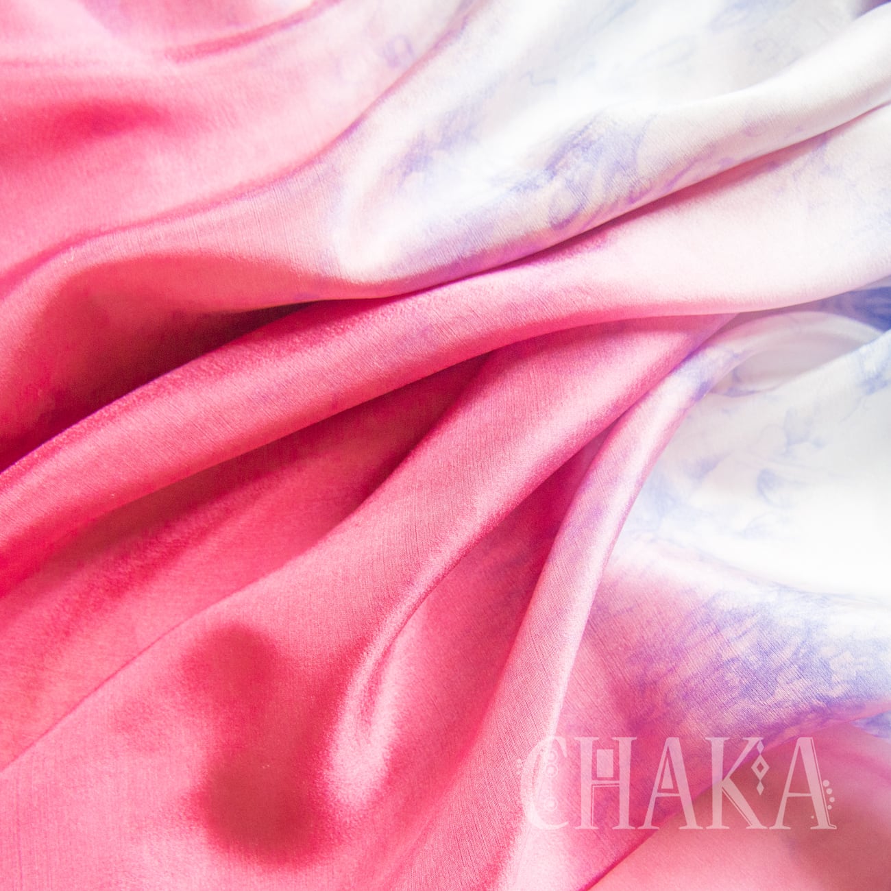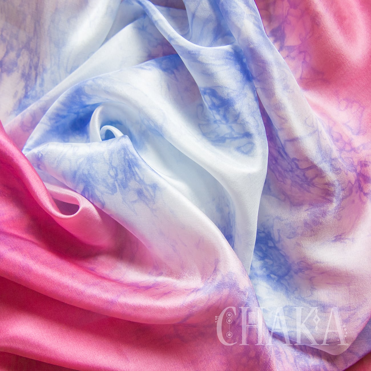 両サイドはローズピンクのグラデーション、中央はオリエンタルブルーのむら染め。