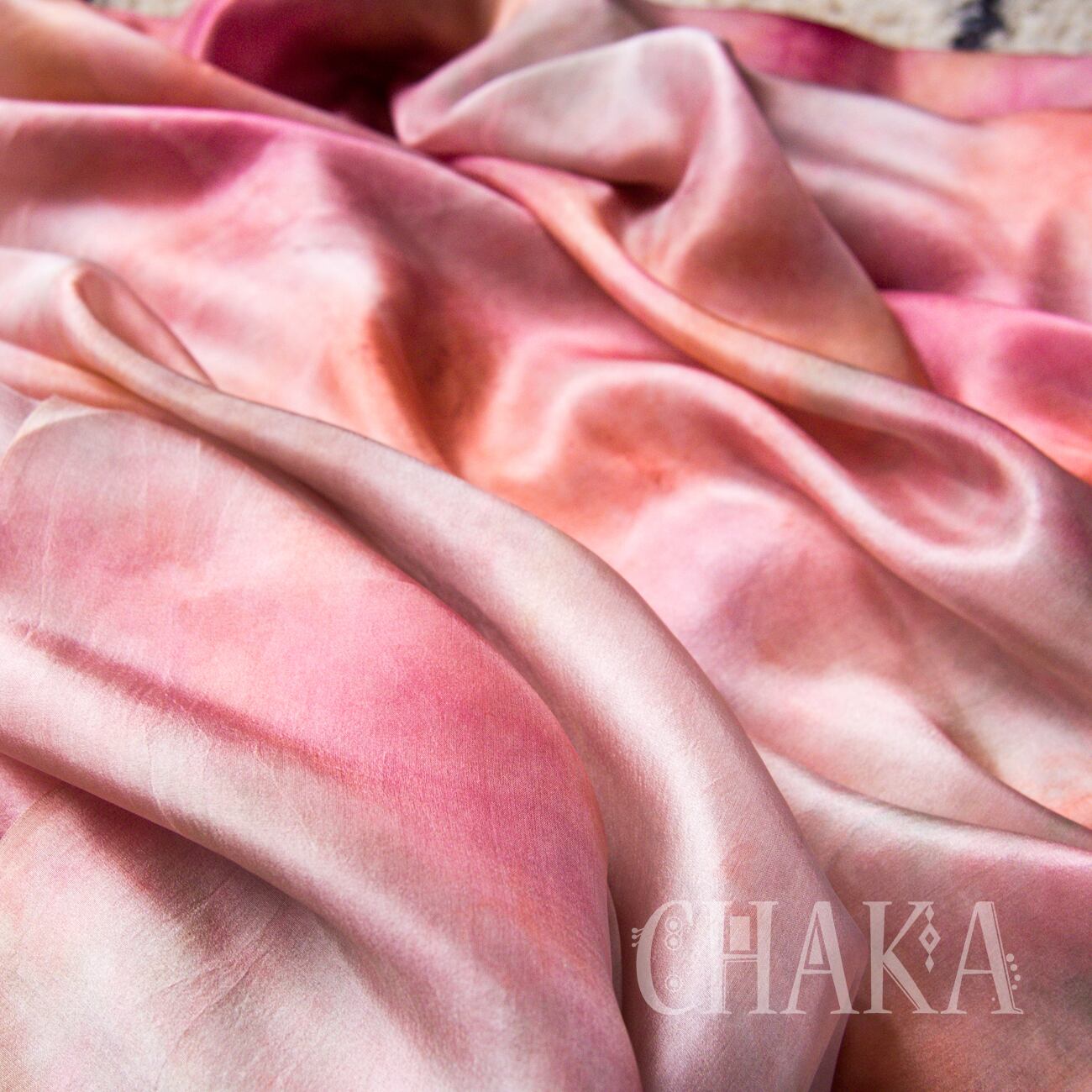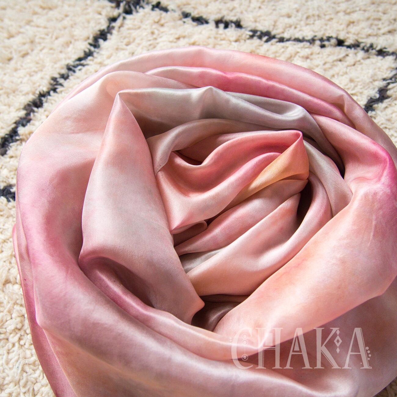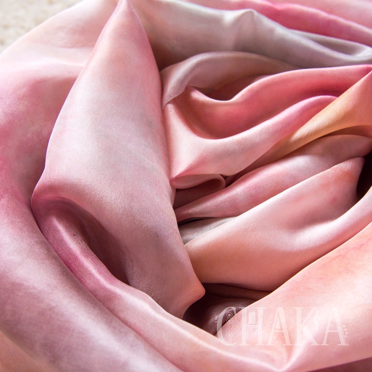 ミュシャの絵画のような、ピンク系のニュアンスカラーを何色も重ねたシルクベールです。