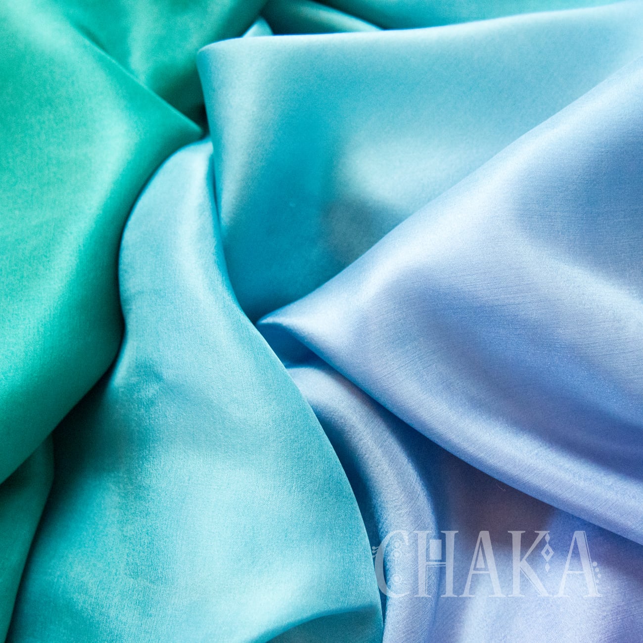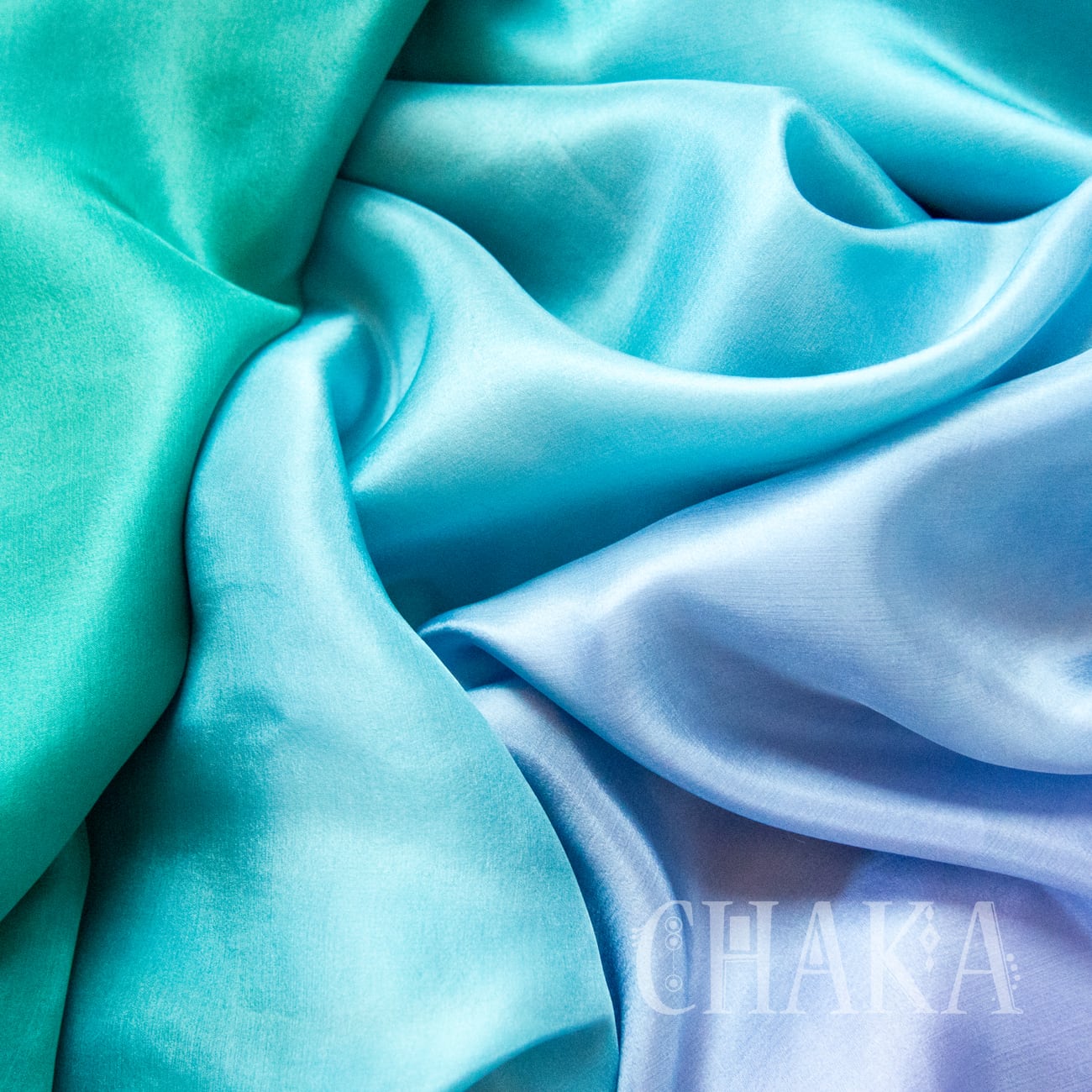 淡いエメラルドグリーン、水色、ラベンダーの3色で染めたシルクベールです。