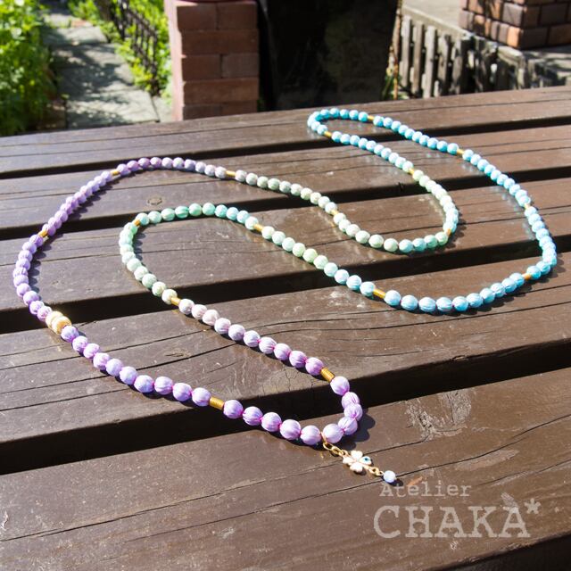 シルクラッピングネックレスとは、ビーズをシルクで包んだネックレスのこと。