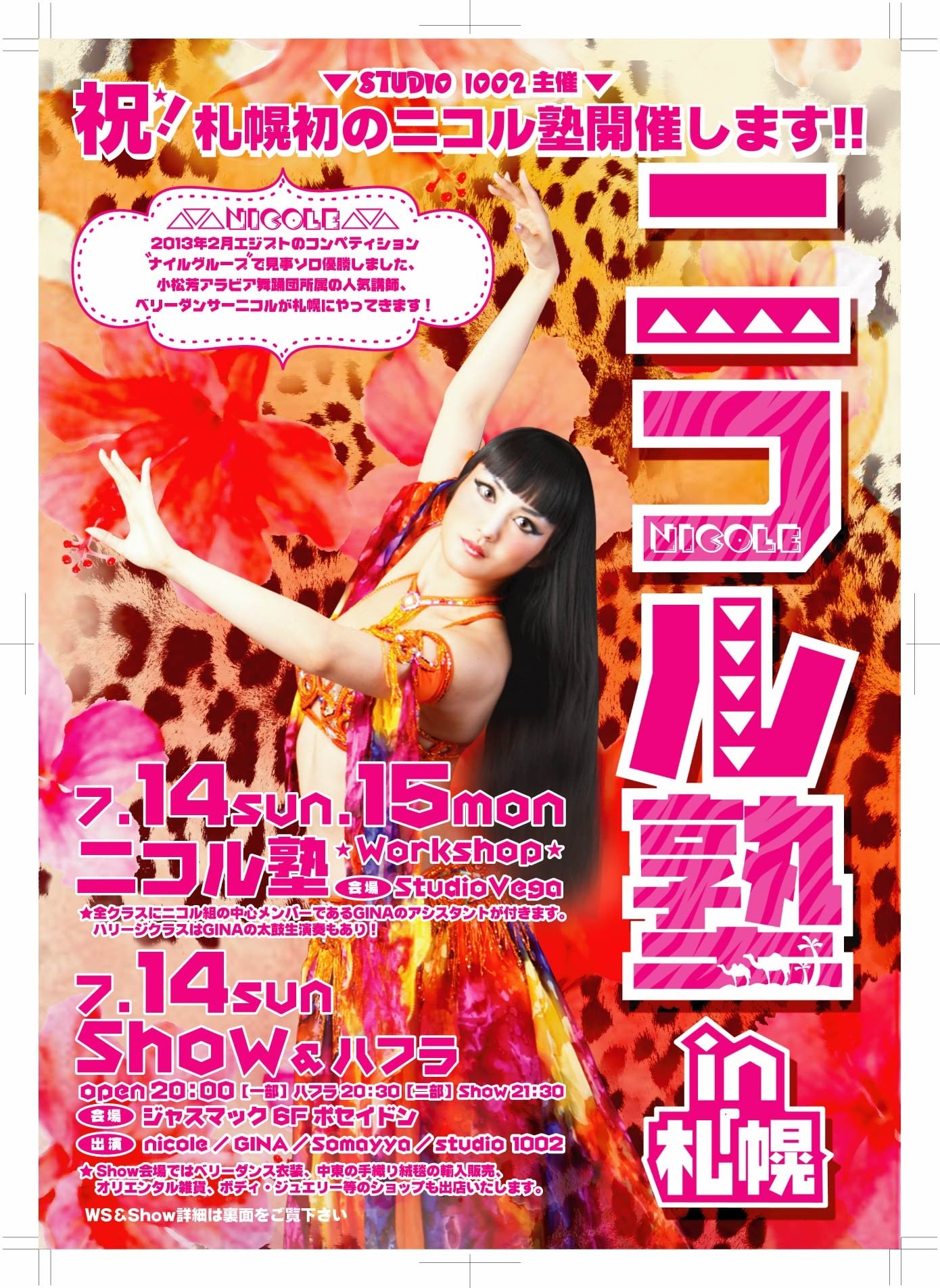 2013年2月エジプトのコンペティション(ナイルグループ)で見事ソロ優を果たした、小松芳アラビア舞踊団所属の人気講師、ベリーダンサーニコルが札幌にやってきます!
