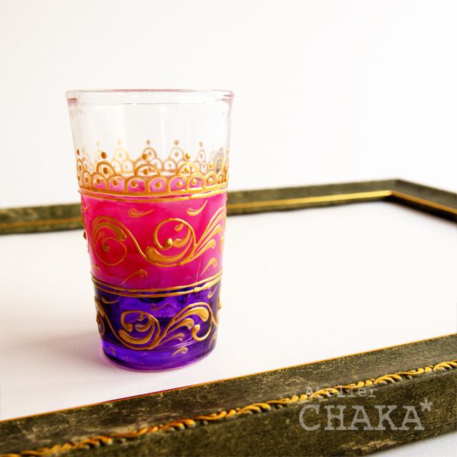 魅惑のチュニジアから、エキゾチックでアラビアンな模様を描いたチャーミングなチャイグラスが届きました。