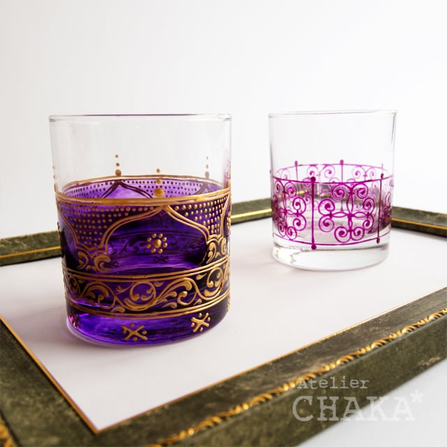 魅惑のチュニジアから、エキゾチックでアラビアンな模様を描いたチャーミングなチャイグラスが届きました。