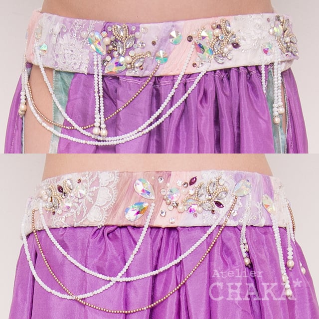 美しく煌めく宝石のような思い出を散りばめて、永遠の夢を運ぶメリーゴーラウンド、そんなオーラをまとったベリーダンス衣装です。