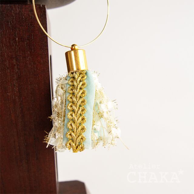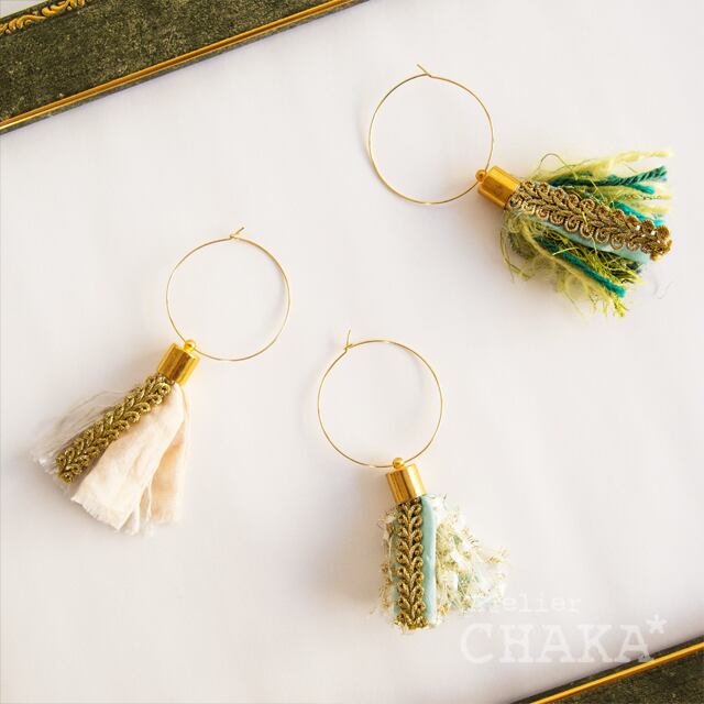 スタンダードなタッセルをキラキラに進化させて、モダンでクラス感のあるピアスが完成しました。