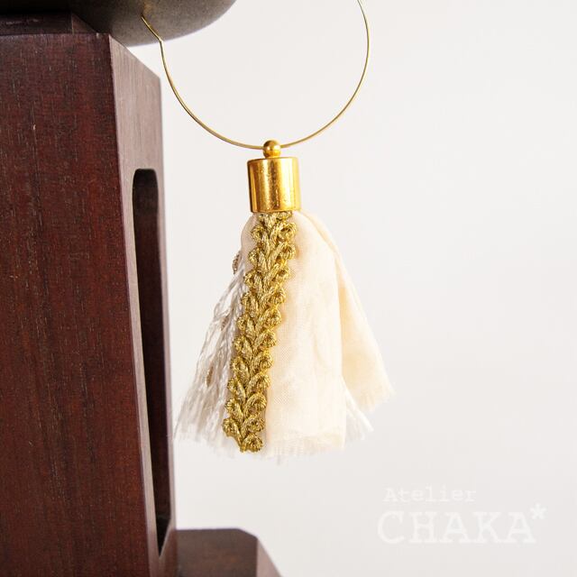 ―シルクと輝きがアクセントの、モダンなタッセルピアス―