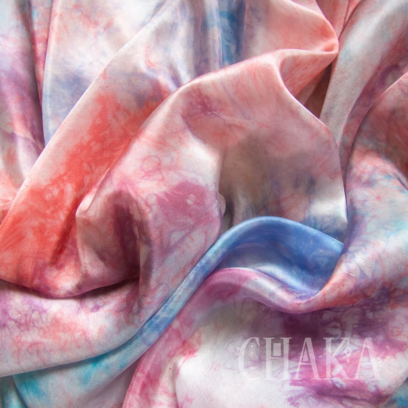 コーラルピンク、ローズピンク、ラベンダー、スカイブルー、ライトブルーでむら染めしました。