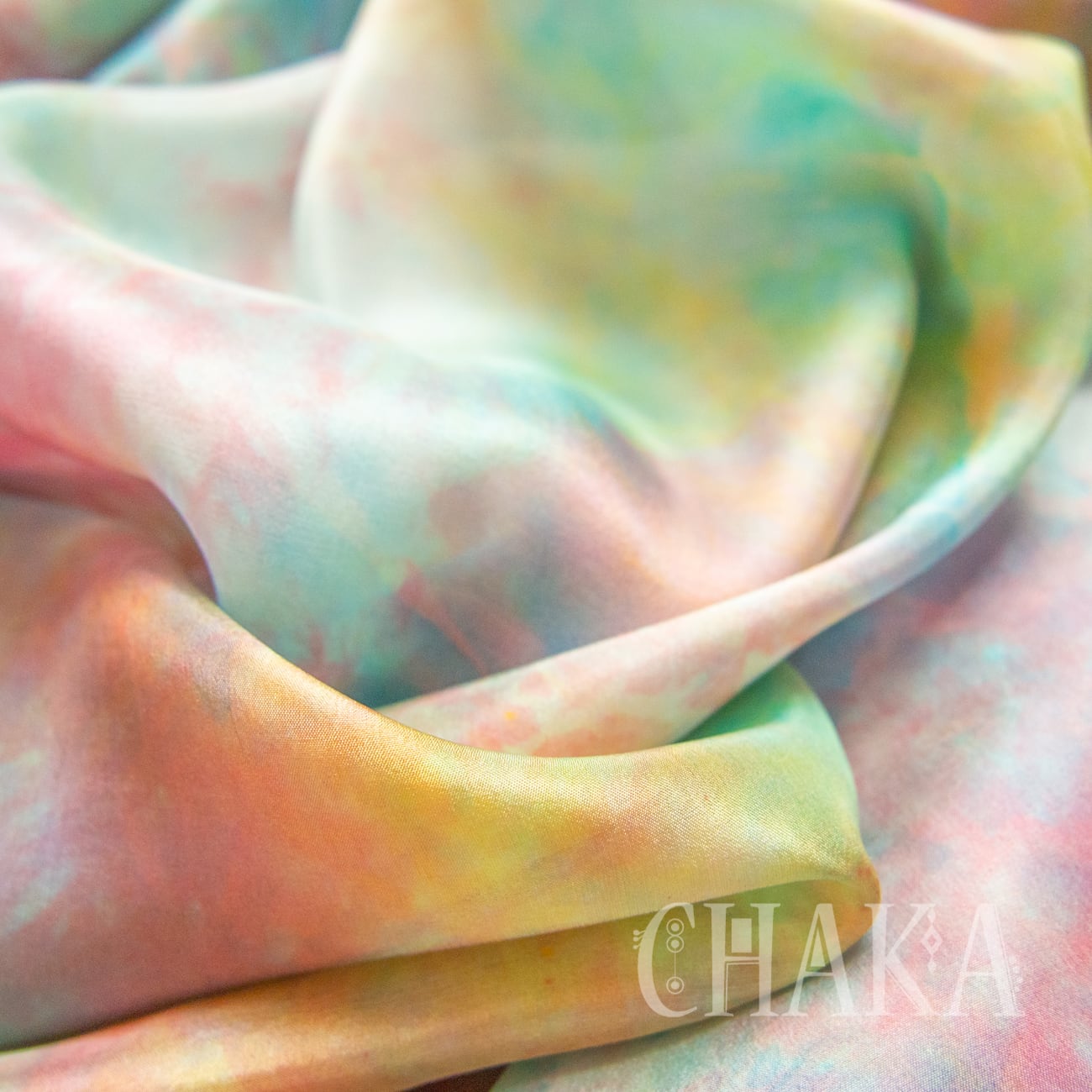 ピンク、イエロー、水色をメインに色を重ね、彩雲をイメージしたむら染めで仕上げたシルクベールです。