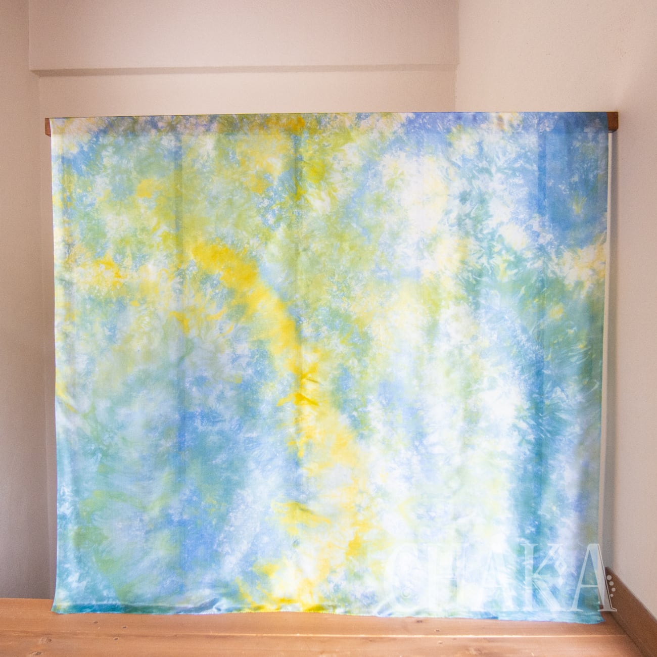 ゴッホの「星月夜」のように、明るい黄色と濃紺の夜空のコントラストを利かせて、躍動感にあふれた雰囲気になるようむら染めで仕上げました。